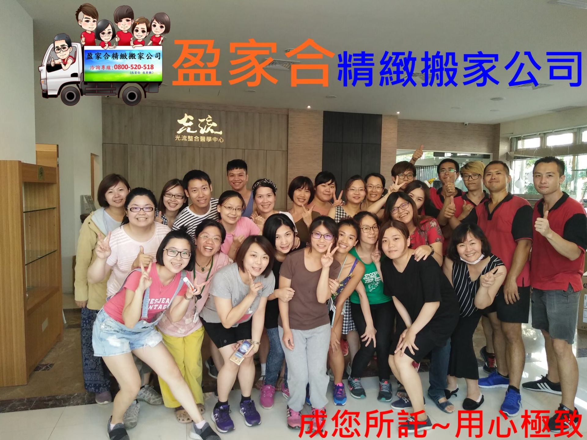 全台最多客戶搬家合影好評推薦-盈家合精緻搬家公司-台中搬家公司貼心的搬遷服務